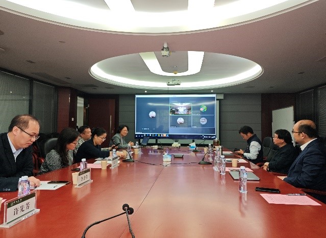 图2 朱芳教授作中心工作报告 图3 委员们现场(在线)给予指导建议