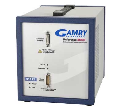 | 主要功能 Reference 3000 是独立运行的高电流、高性能恒电位仪,其具有从 3 安培到 300 皮安的 11 种电流范围,以及高达 32 伏特的槽压。 而内置的电化学阻抗谱电子设备使得 Reference 3000 实现了 10 μHz 至 1 MHz 的测量频率范围。主要用于电池、燃料电池和超级电容器、合成化学、电镀研究、传感器开发、动力学和热力学测量、电化学阻抗谱、腐蚀测量和分析电化学。 | |