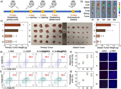 图4. 铱基胀亡诱导剂在肿瘤小鼠模型中的治疗效果。