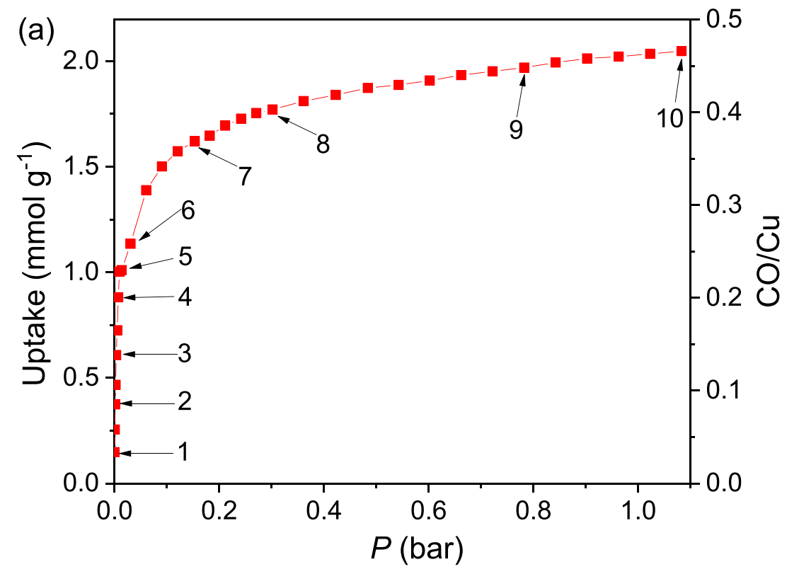 CO的分离和纯化对工业和环境都具有重要意义,目前主要依赖于化学吸附/吸收,但强化学结合导致脱附困难,其中的开放金属位点(Open Metal Site, OMS)也容易吸附其他非目标分子,从而对空气/氧气和水表现出较低的稳定性。