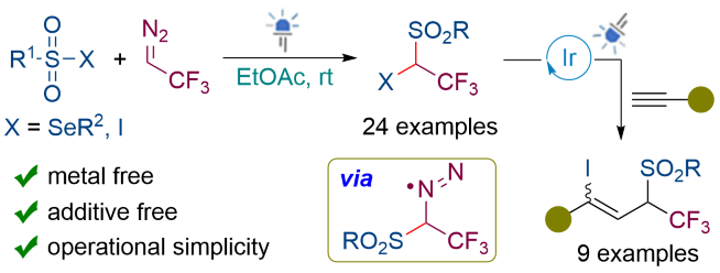 • Visible-Light-Promoted Radical gem-Selenosulfonylation or Iodosulfonylation of 2,2,2-Trifluorodiazoethane under Photosensitizer-Free Conditions